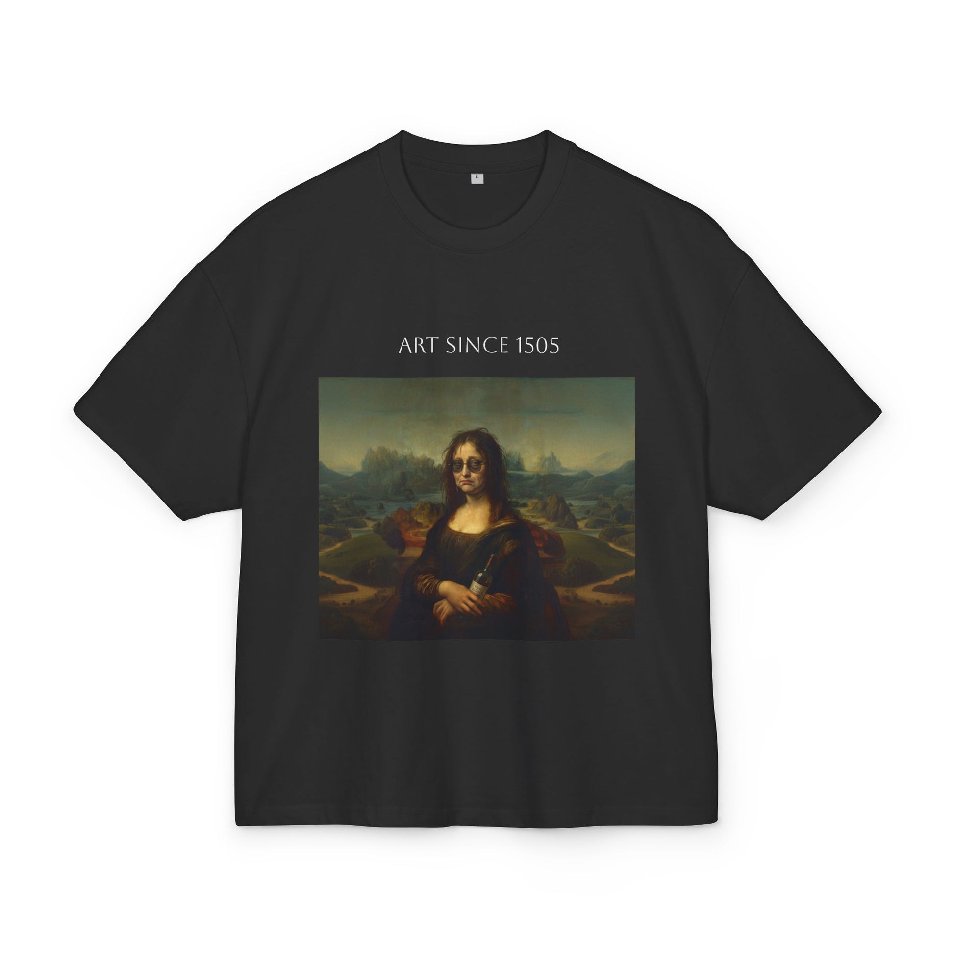 Ta ciężka koszulka o prostym kroju wprowadza do codziennego ubioru zabawny humor świata sztuki. Luźny, lekko skrócony fason swobodnie opada na ramiona, dzięki czemu na pierwszy plan wysuwa się odważny kwadratowy nadruk — zmodernizowana Mona Lisa w okrągłych okularach przeciwsłonecznych, trzymająca smartfon. Gruba, gęsto tkana bawełna jest miła w dotyku i gładka, dzięki czemu nadruk jest wyraźny i żywy. Noś ją podczas wieczorów w galerii, swobodnych spacerów po mieście lub nieformalnych spotkań, gdy chcesz połączyć wygodę z odrobiną satyry kulturowej. Opuszczone ramiona i luźny krój ułatwiają nakładanie na długie rękawy lub pod koszulę, a wszyte metki sprawiają, że wnętrze jest czyste i wygodne. Ta koszulka emanuje cichą, ironiczną pewnością siebie: nawiązuje do historii sztuki, jednocześnie pozostając mocno osadzona w dzisiejszej rzeczywistości scrollowania i robienia zdjęć. Pasuje do garderoby osoby, która kocha pomysłowe grafiki, lubi wywoływać rozmowy i preferuje trwałe, dobrze wykonane podstawowe elementy garderoby, które nadal są wyraziste. Cechy produktu - 100% specjalnie przędziona bawełna zapewniająca gładką, mocną powierzchnię nadruku - Ciężka tkanina o gramaturze 8,5 uncji (300 g/m²) — solidna i trwała - Krój oversize o prostym, lekko skróconym fasonie z opuszczonymi ramionami dla swobodnego układania się - Klasyczny okrągły dekolt z prążkowanym, płaskim kołnierzem dla schludnego wyglądu - Wszyte metki na szyi i po lewej stronie zapewniają schludne i wygodne wykończenie.